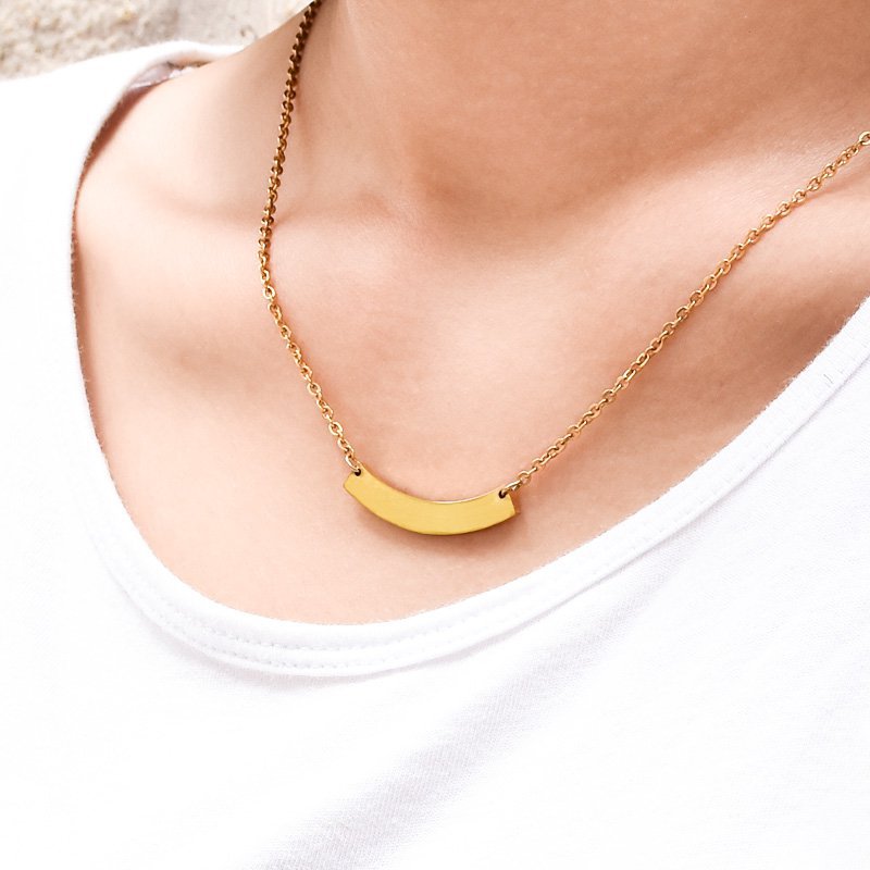Custom Personalized Bar Necklace Women Gold Color Stainless Steel