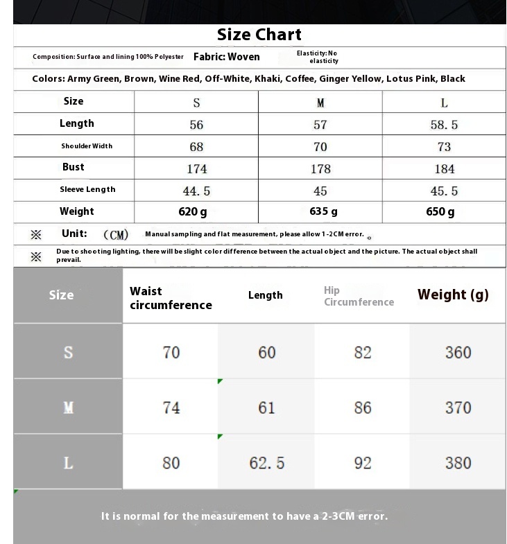 Color: coat, pants, skirt, Brown (customized color), reddish brown (customized color), Black (customized color)
